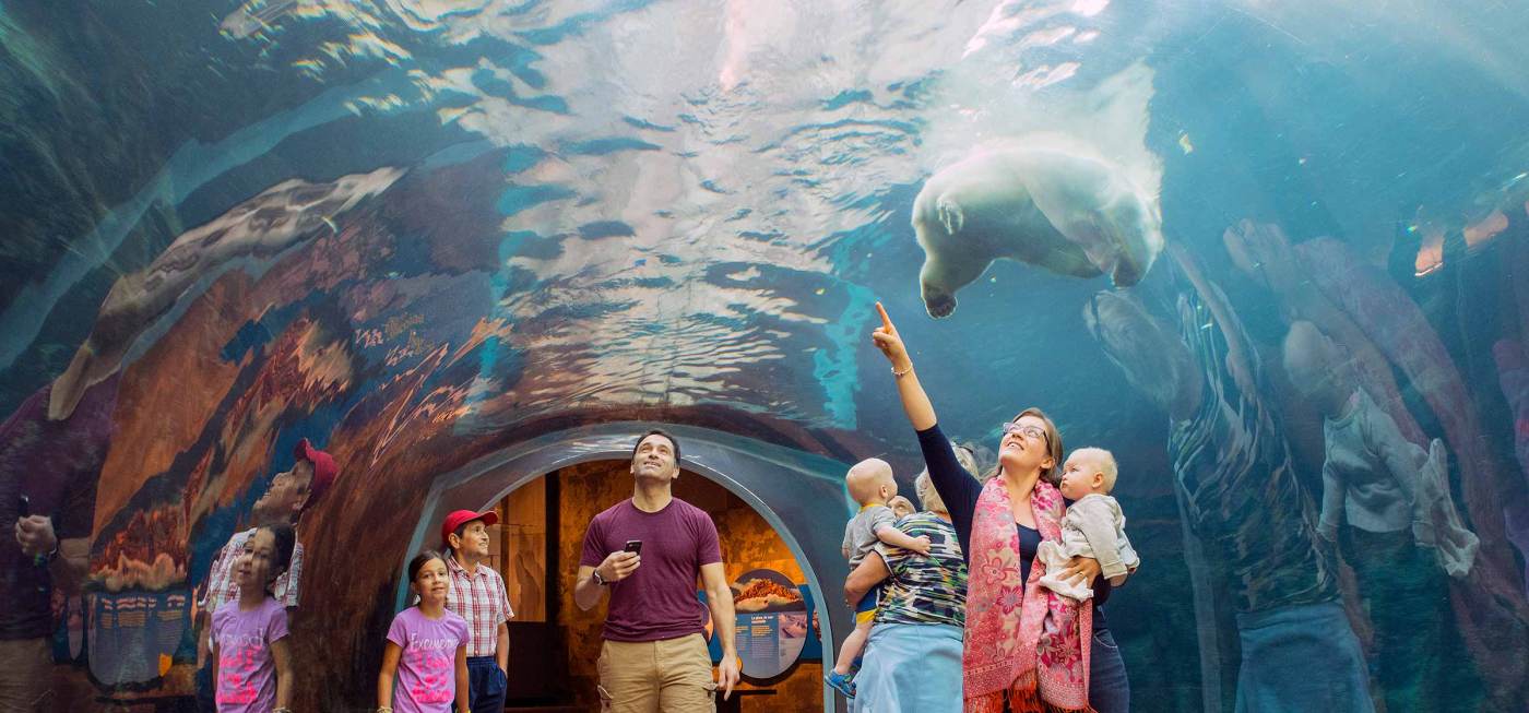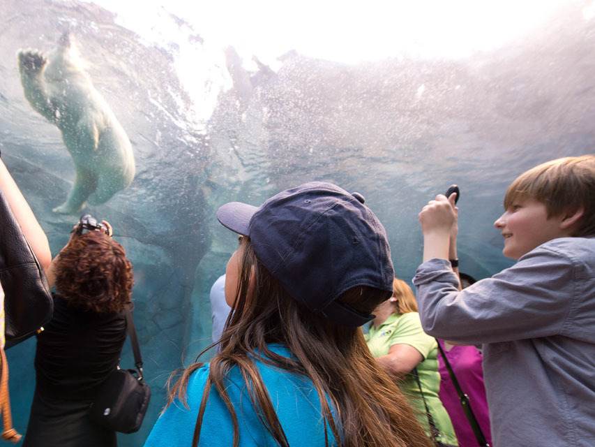 Der Tundra Grill bietet erschwingliche Schnellgerichte mit vielen kinderfreundlichen Gerichten und einen unglaublichen Blick auf die größte Eisbärenausstellung des Zoos durch eine 150 Fuß breite Wand mit 9 Fuß hohen Fenstern.