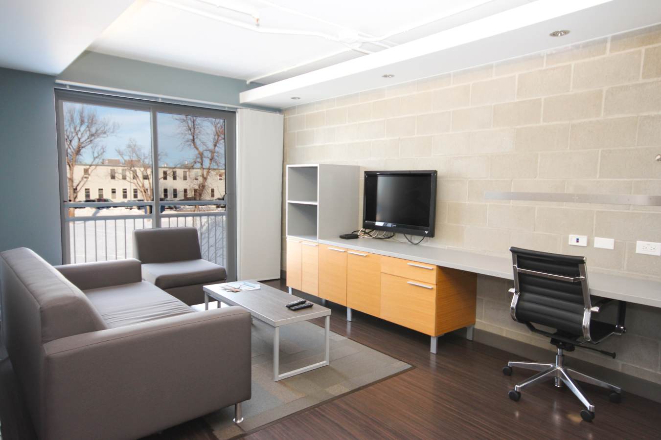 Jedes Zimmer verfügt über eine Küchenzeile mit Herd, Mikrowellenherd und grundlegendem Kochgeschirr. Es gibt einen Ess- und Wohnbereich und ein eigenes Schlafzimmer mit einem Doppelbett. Die Barker Suites verfügen über eine Gemeinschaftslounge im Hauptgeschoss mit Küchenbereich und Terrasse sowie über kleinere Tagungsräume in den oberen Etagen, die sich hervorragend für Gruppenveranstaltungen eignen. Auf jeder Etage gibt es einen Waschraum, den die Gäste gerne nutzen können.