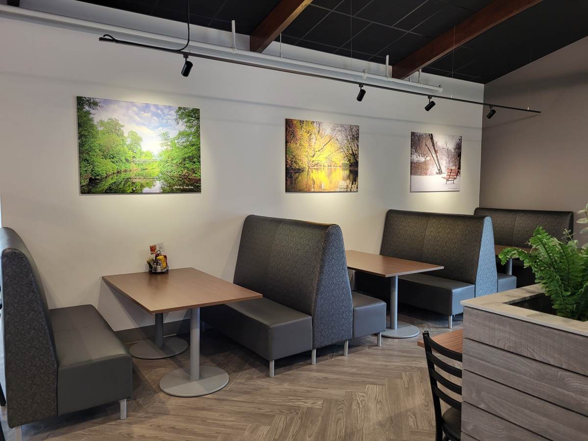 Das Boyne River Bistro bietet eine Vielzahl von frisch zubereiteten Speisen und Desserts an. Das Bistro liegt direkt am Boyne River und gegenüber dem Carman Golf & Curling Club und bietet eine herrliche Lage, eine schöne Einrichtung und eine malerische Terrasse. Unser lizenziertes Restaurant ist täglich zum Mittag- und Abendessen geöffnet. Auf der Speisekarte stehen u. a.: Brote, Sandwiches, Pasta, Wings, Wraps, Nachos, Salate, Tacos, hausgemachte Suppe, Pommes frites und vieles mehr. Zum Nachtisch gibt es hausgemachte Torten und Käsekuchen. Wir haben eine Kinderkarte, 2 Fernseher und einen privaten Speisesaal für besondere Anlässe.