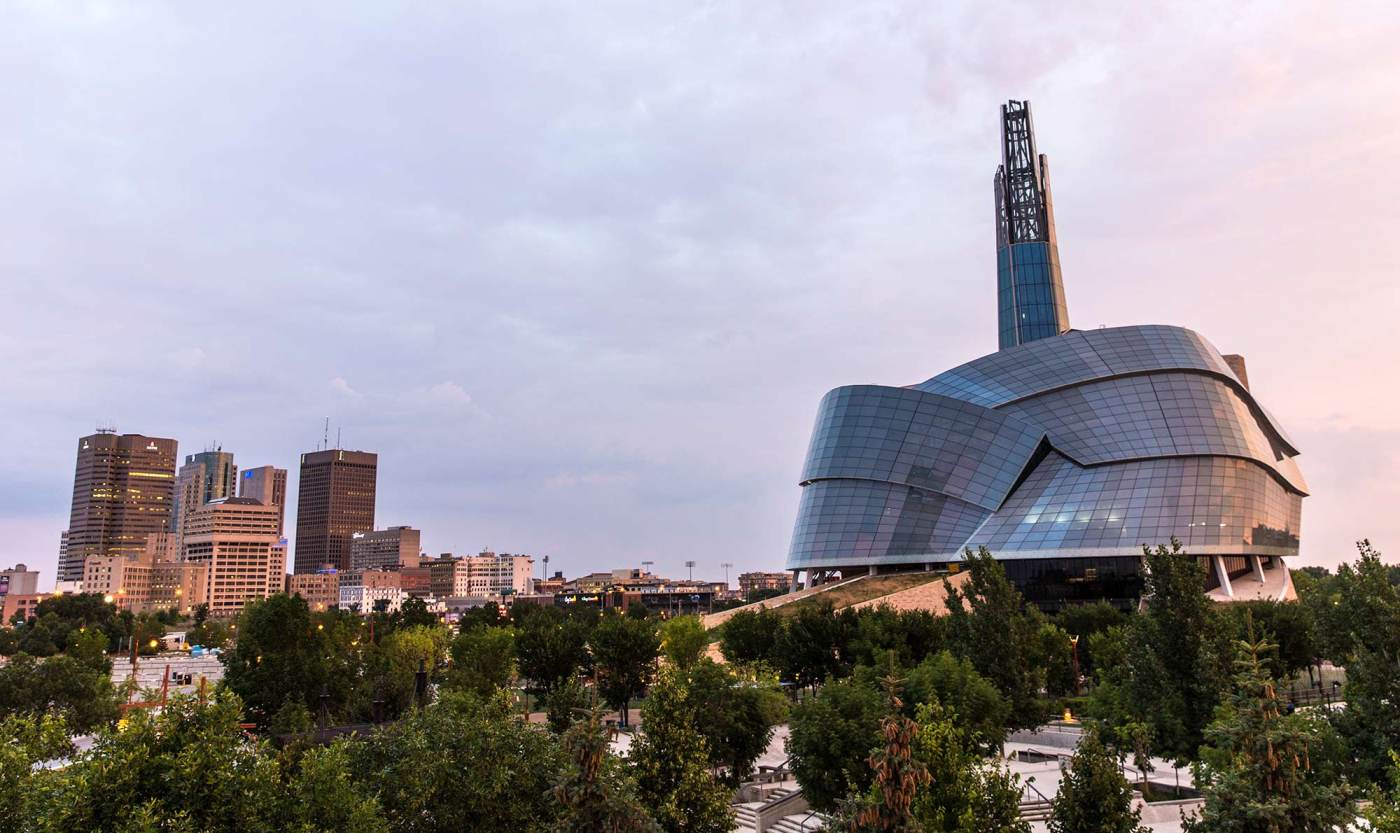 Kanadas neuestes Nationalmuseum erhebt sich aus der Prärieerde in Winnipeg an den Forks, wo die Flüsse Red und Assiniboine auf Treaty One Land zusammentreffen - ein historischer Ort der Begegnung seit Tausenden von Jahren.