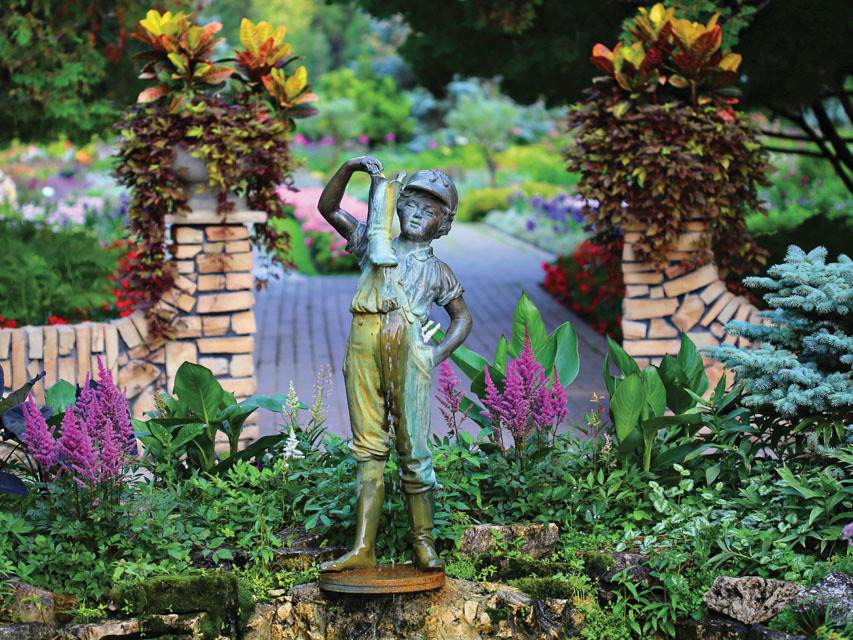 Eine der bemerkenswertesten Statuen im Englischen Garten, der Junge mit dem Stiefel, wurde dem Park vom Winnipeg Downtown Rotary Club gestiftet. Das Königin-Victoria-Denkmal wurde der Stadt Winnipeg anlässlich des Diamantenen Jubiläums von Königin Victoria gestiftet und 1967 in den Park versetzt.