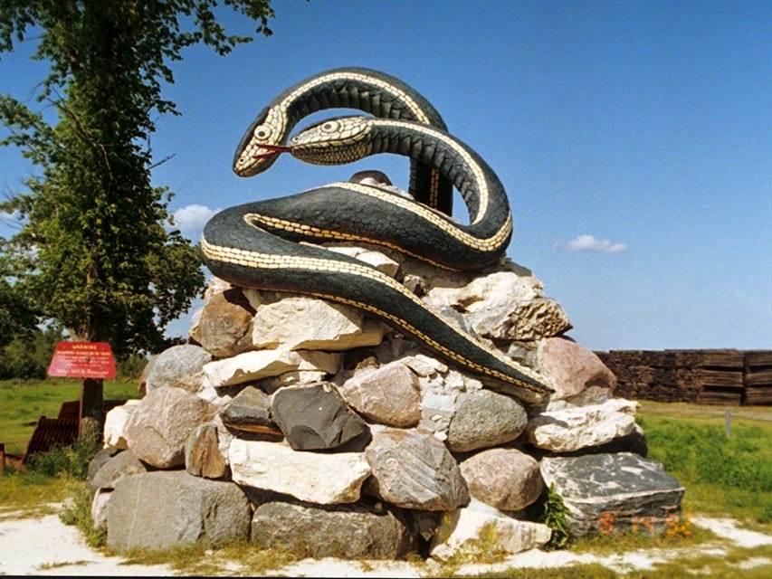 Dies ist der Ort, an dem Zehntausende von Strumpfbandnattern aus den Kalksteinhöhlen auftauchen und sich in den ersten beiden Maiwochen in einem Paarungsritual verheddern. Anfang September kehren sie in ihre Höhlen zurück und bleiben aktiv und sichtbar, bis das kühle Wetter sie in den Untergrund zwingt. Aktuelle Informationen zur Schlangenaktivität finden Sie hier. http://www.naturenorth.com/spring/creature/garter/Narcisse_Snake_Dens.html