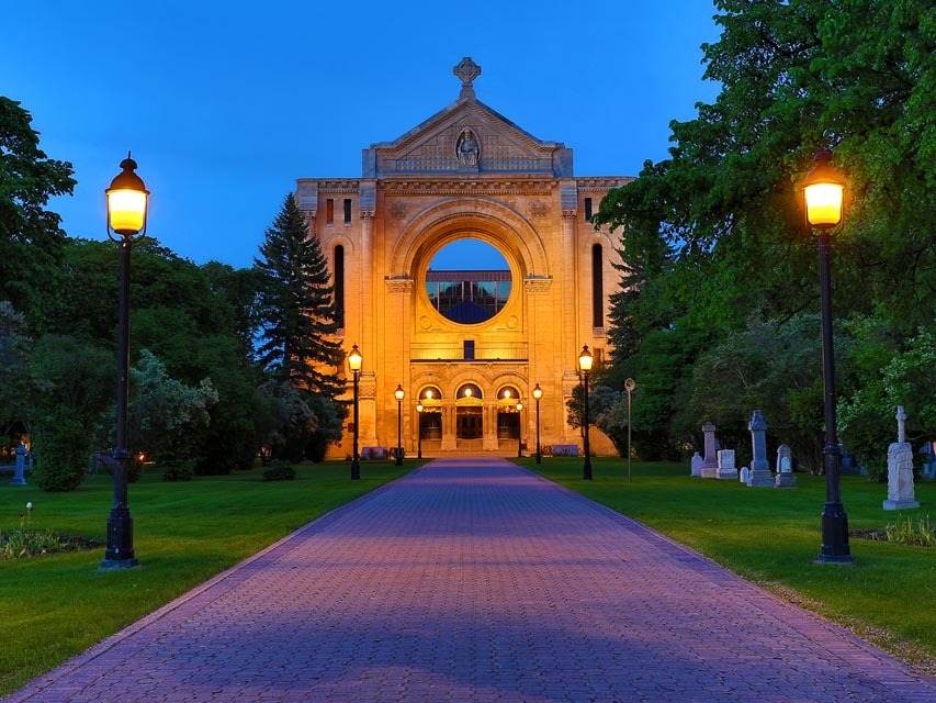 Die St.-Boniface-Kathedrale, die älteste Kathedrale Westkanadas, wurde ursprünglich 1818 erbaut und mehrmals ersetzt. Von dem Bauwerk von 1908, das 1968 abbrannte, sind nur noch die Fassade und ein Teil der Mauern erhalten. Die heutige Kathedrale, die von Etienne Gaboury entworfen wurde, wurde 1972 auf den Ruinen des Baus von 1908 errichtet. Standort: 190 Avenida de la Cathédrale. (PHS)