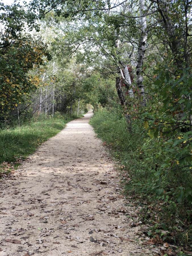 Unser beliebter Wanderweg ist Teil des Trans Canada Trail und führt durch einen schmalen Streifen Wildnis auf einem alten Bahngleis nach dem historischen letzten Lauf der Prairie Dogs.
