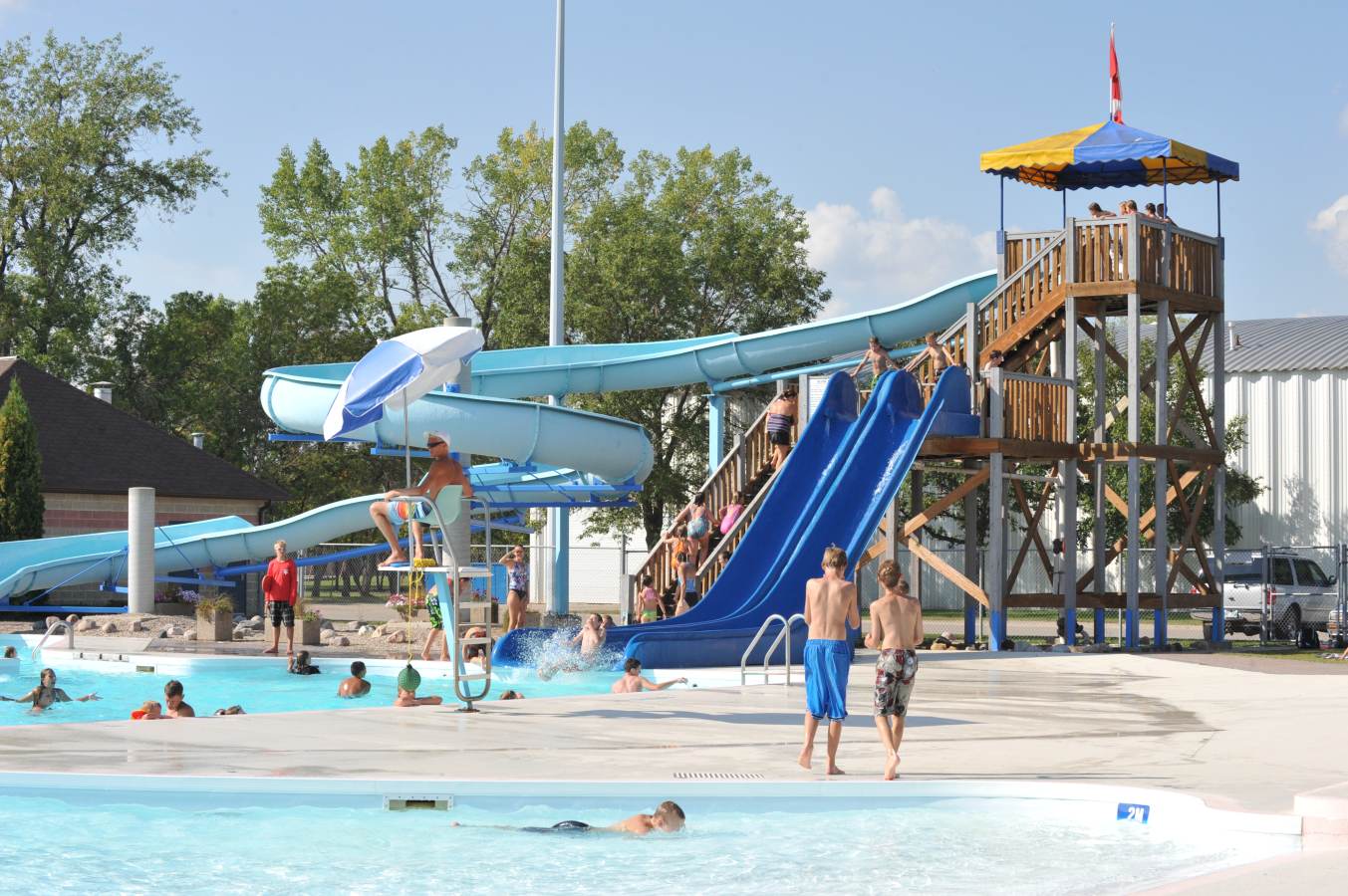 Unser saisonal geöffnetes Freibad verfügt über zwei schnelle Rutschen, eine Wendelrutsche, Whirlpools, Sprungbretter, einen Planschpark und eine Wiese, die sich hervorragend für Picknicks eignet.