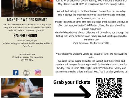 Während und nach der Verkostung stehen wir Ihnen gerne zur Verfügung, und auch der Obstgarten und die Gärten können besichtigt werden. Laden Sie Ihre Freunde ein und verbringen Sie einen schönen Tag bei uns. Genießen Sie die Sehenswürdigkeiten im Pembina River Valley und probieren Sie unsere köstlichen Cider sowie regionale Spezialitäten. Sie werden es nicht bereuen, uns gefunden zu haben.
