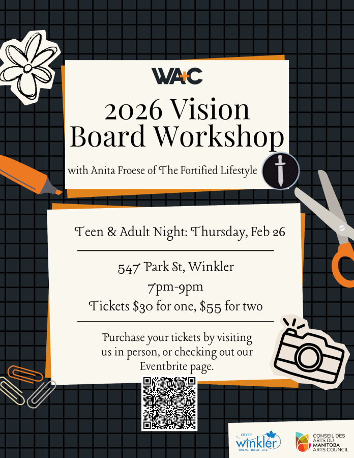Möchten Sie Ihre Neujahrsvorsätze erneut in Angriff nehmen? Dann ist unser Vision-Board-Workshop 2026 genau das Richtige für Sie! Kommen Sie am 26. Februar ins WA+C Centre und gestalten Sie gemeinsam mit Anita Froese von The Fortified Lifestyle inspirierende Vision Boards mit erreichbaren Zielen für das neue Jahr!