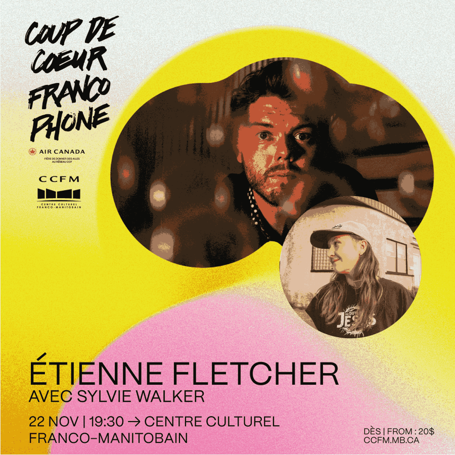 Am 22. November kehren Les Coups de Cœur Francophones mit Étienne Fletcher und Sylvie Walker ins CCFM zurück. Tauchen Sie ein in ihre authentischen und herzlichen Welten durch eine Performance, die Rock, Blues, Folk und Pop vermischt. Étienne Fletchers bewegende Stimme wird in Ihnen nachhallen, während Sylvie Walkers aufrichtiges und fesselndes Universum Sie auf eine unvergessliche Reise mitnehmen wird. Kommen Sie am 22. November in den Antoine-Gaborieau-Saal und erleben Sie ein außergewöhnliches Konzert, das um 19.30 Uhr beginnt. Karten ab $20.