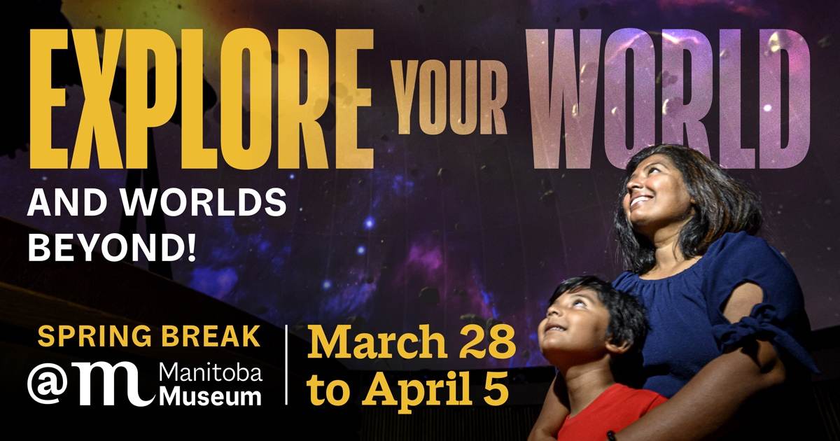 Entdecken Sie in den Frühjahrsferien im Manitoba Museum Ihre Welt – und Welten jenseits davon! Freuen Sie sich darauf, die Wunder der Erde, des Weltraums und alles dazwischen zu entdecken – mit einem spannenden Programm vom 28. März bis zum 5. April, täglich von 10 bis 16 Uhr.
